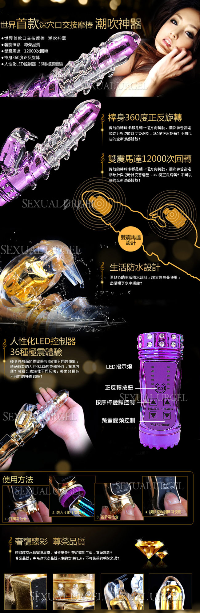 日本傲視皇者-潮吹神舌36段變頻防水按摩棒-貴族炫紫