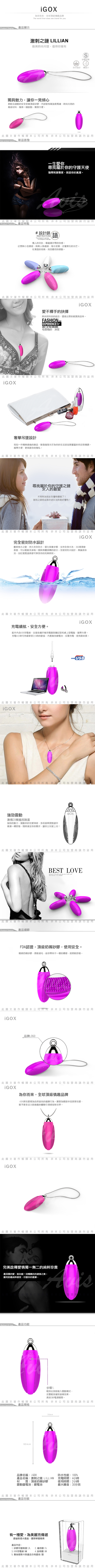.商品名稱:香港IGOX LILLIAN 刺激之鏈 項鍊造型 20頻 充電型 跳蛋 USB充電 魅紫*1