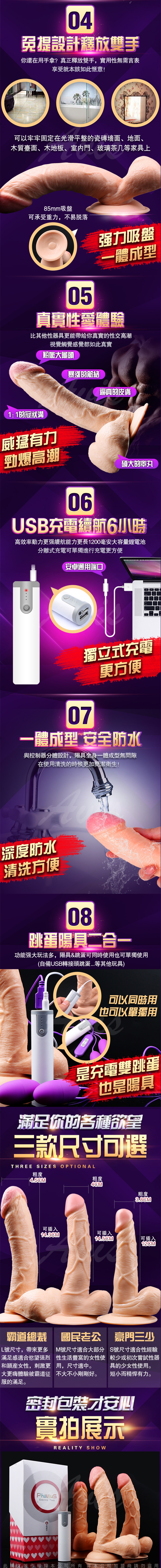 .商品名稱:USB充電+旋轉搖擺 仿真陽具 巨大肉棒 逼真老二 按摩棒 豪門三少