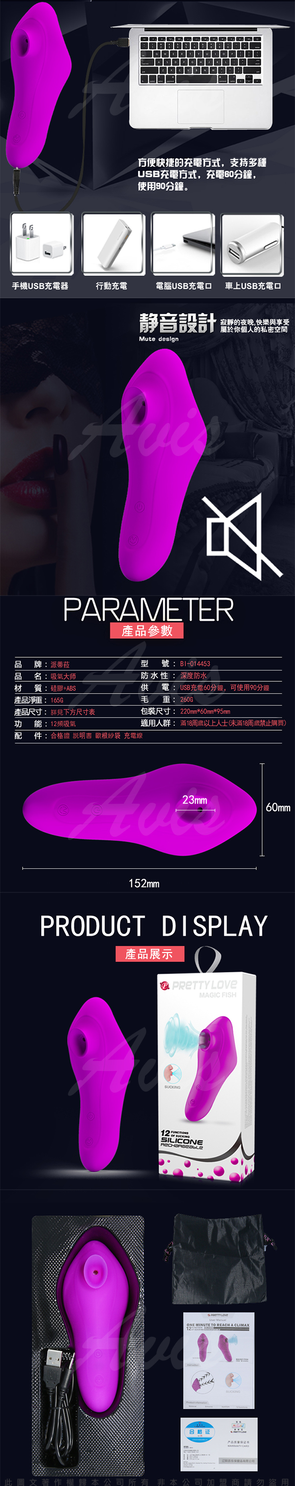 .商品內容:PRETTY LOVE MAGIC FISH 12段變換吮吸USB充電吞吐按摩棒