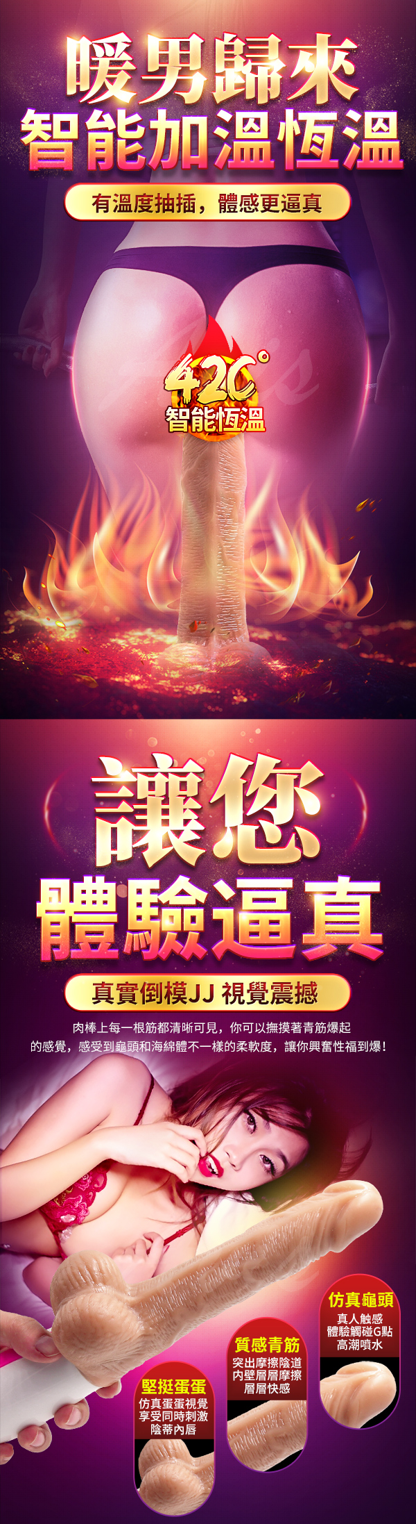 智能加熱搖擺震動陽具