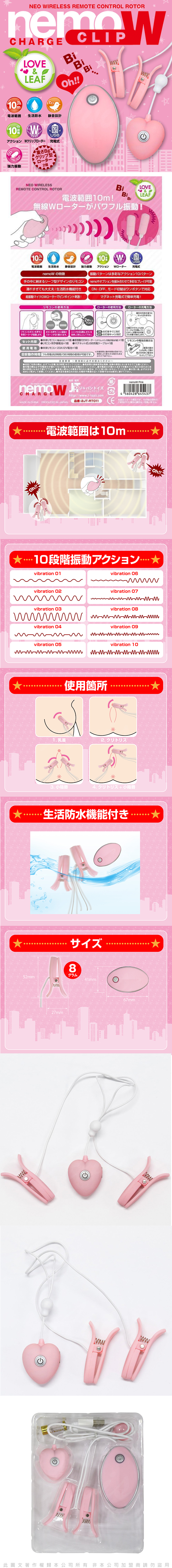 .主商品:日本JPT NEMO W 尼莫W 10段變頻 無線遙控乳夾 粉