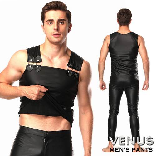 Venus 男士漆皮無袖衣+漆皮長褲 舞台表演衣 摔角衣