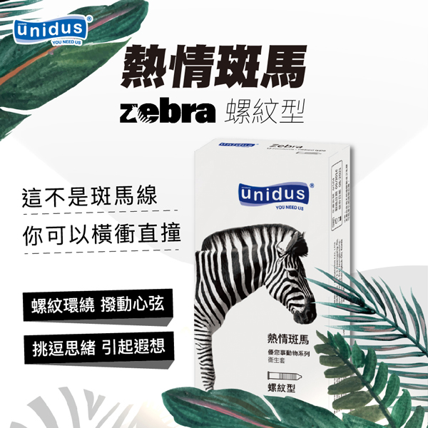unidus優您事 動物系列保險套-熱情斑馬-螺紋型 12入
