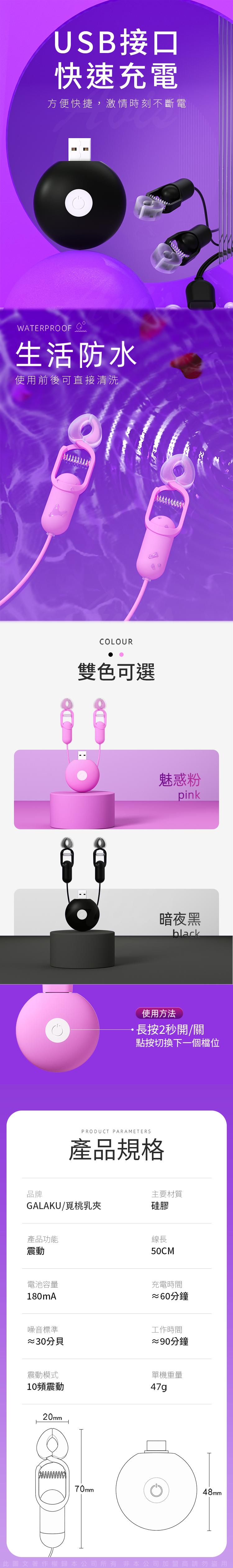 產品名稱:GALAKU|覓桃 變頻前戲調情|震動乳夾 粉色