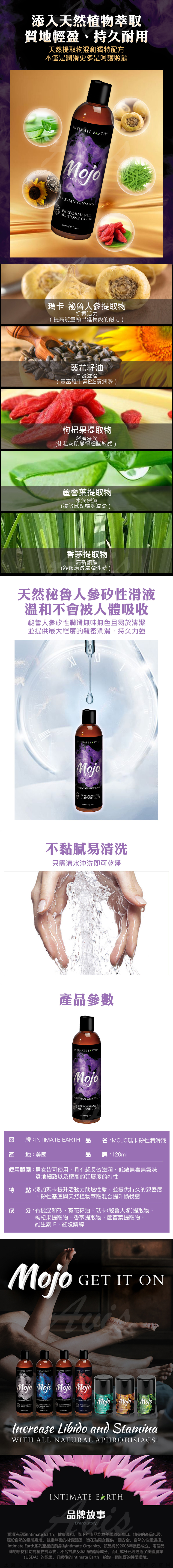 品名:Intimate Earth|MOJO|瑪卡矽性潤滑液 120ml