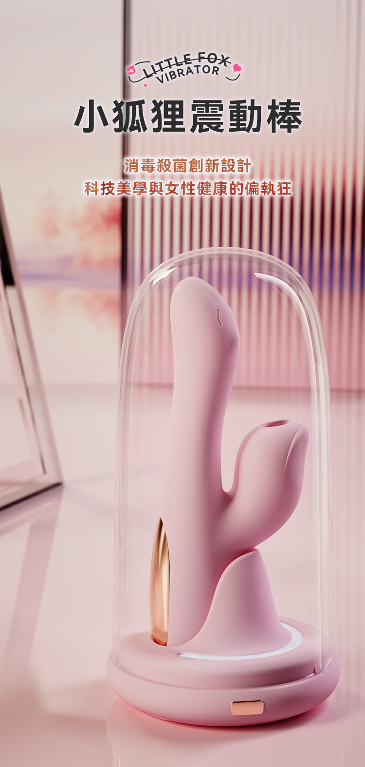 小狐狸震動棒,消毒抑菌創新設計,科技美學與女性健康的偏執狂,一鍵充電消毒, 燈光亮起瞬間帶走污漬,防護罩氣體級密封 ,氣體灰塵細菌入侵阻擋;十頻動感強震,解鎖敏感地帶,縱享急速高潮;十頻動感裹吸,高分吻戲,三維快感體驗;智能恆溫,還原真實體溫,開機狀態下棒頭自動加溫至42度C,忘不了的溫馨體驗!