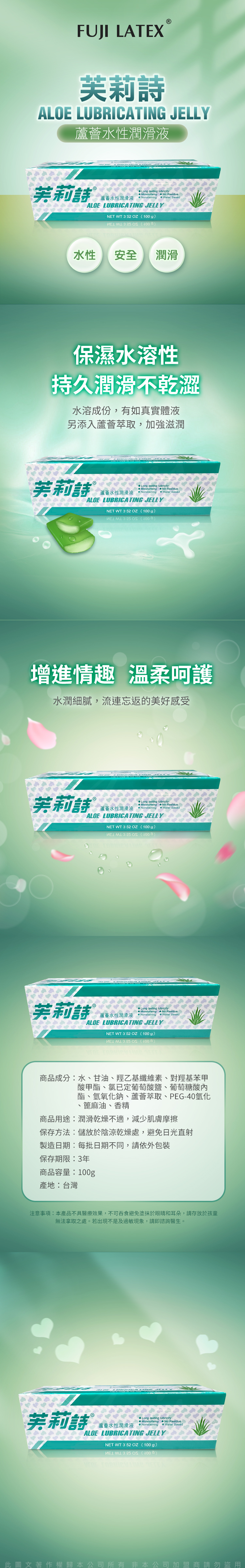 保濕水溶性持久潤滑不乾澀水溶成份,有如真實體液另添入蘆薈萃取,加強滋潤