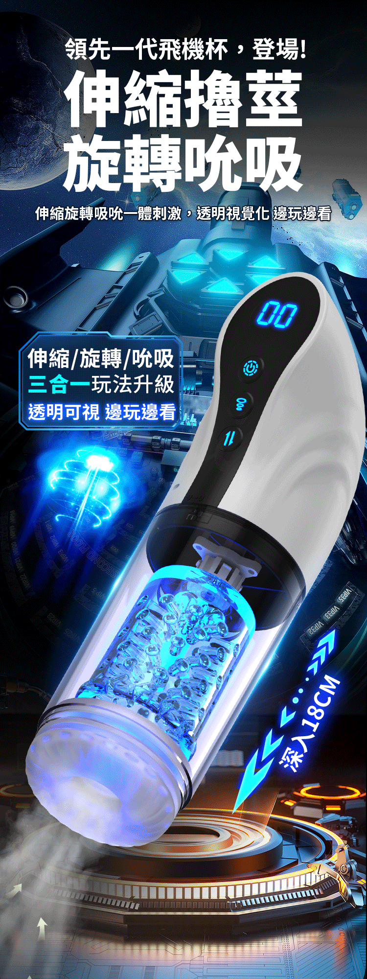 商品名稱:樂旋風領航杯|變頻伸縮旋轉吮吸飛機杯 發音款