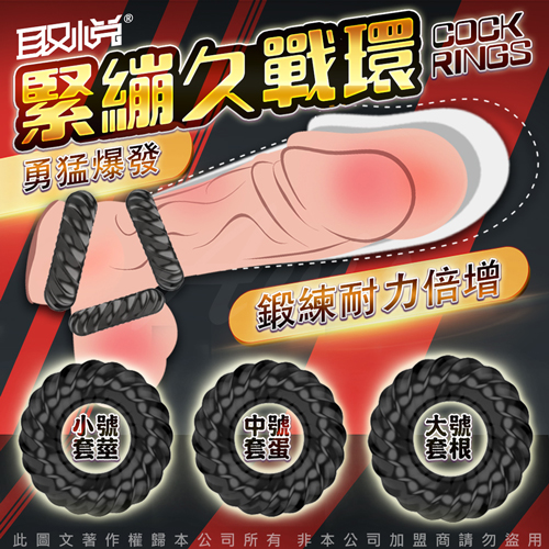 取悅 緊繃久戰 螺紋曲面矽膠鎖精圓環-三環